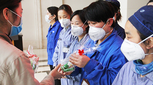 3月6日,由公司工会、妇联组织的“三八”节慰问活动走进明发国际网站四园材料制造部,向50余名一线女工代表送上节日礼物和祝福。今年2月4日,为了支援疫区所需呼吸机的生产配套项目,包括这些女工在内的百余名员工响应号召、提前返岗,为疫区赶制磁钢。