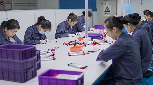 竞赛在包装车间拉开帷幕。首先比拼的是操作技能,每组各取一万片产品,进行检验、装管(纸包)、充磁、拉外观、装箱等工序。赛前小组成员们结合各自的特点,进行工序分工,以实现团队的最优搭配。参赛的选手精神饱满、斗志昂扬。紧张的比赛过程中,裁判员手掐计时器,神情专注地看着每位选手娴熟地操作。竞赛项目结束,由评审组成员对每个组的产品进行公正检验。