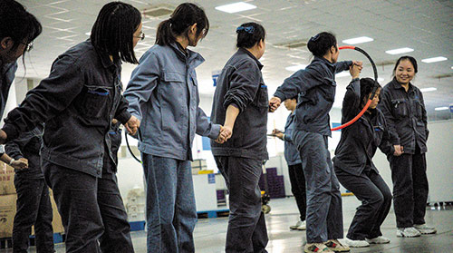 趣味体育游戏,则又包括“两人三足”、“筷子夹乒乓球”以及“圈圈到底”等形式。游戏过程中,小组成员充分树立竞争意识,发扬奋斗精神,展现了良好的团队凝聚力。
